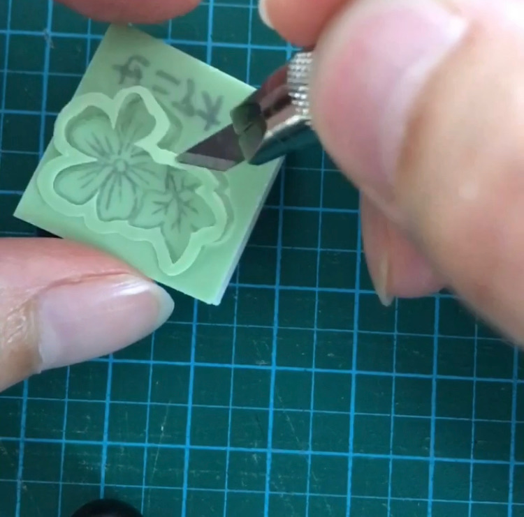 転写したゴムを彫っていきます。